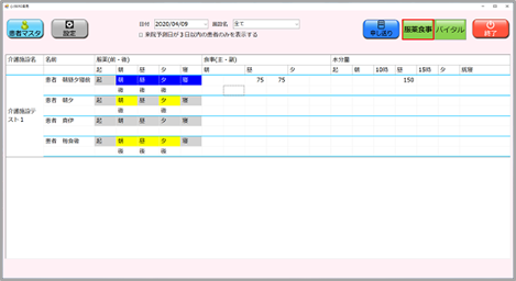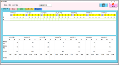 青表示は、服薬、黄表示は、まだ服用していない