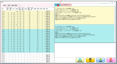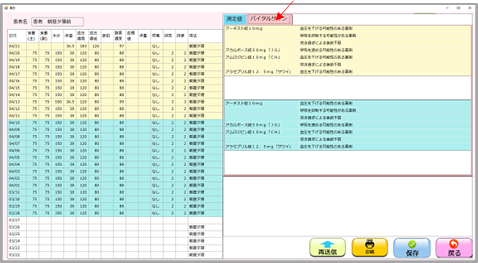 バイタルサインは、医薬品が食事、バイタルに影響があるものを表示