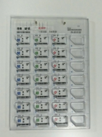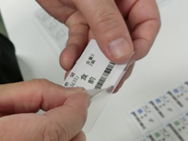 治具についている柱に蓋シールの穴を入れます